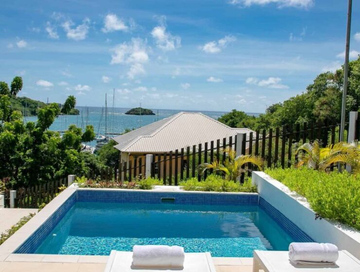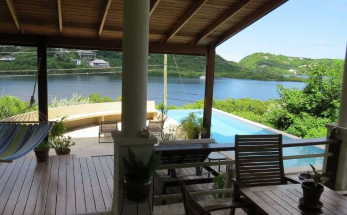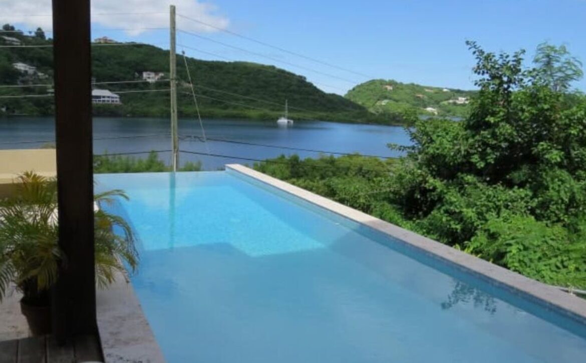 Swimming PoolFenced yardSea viewFront yardBalcony