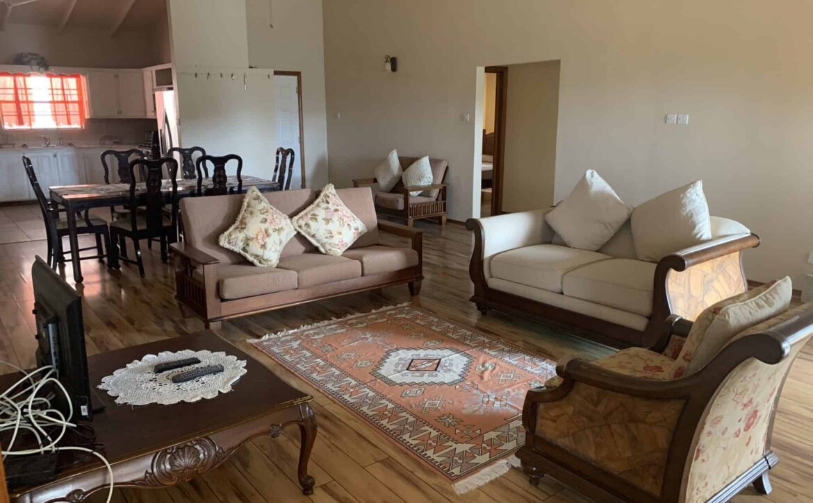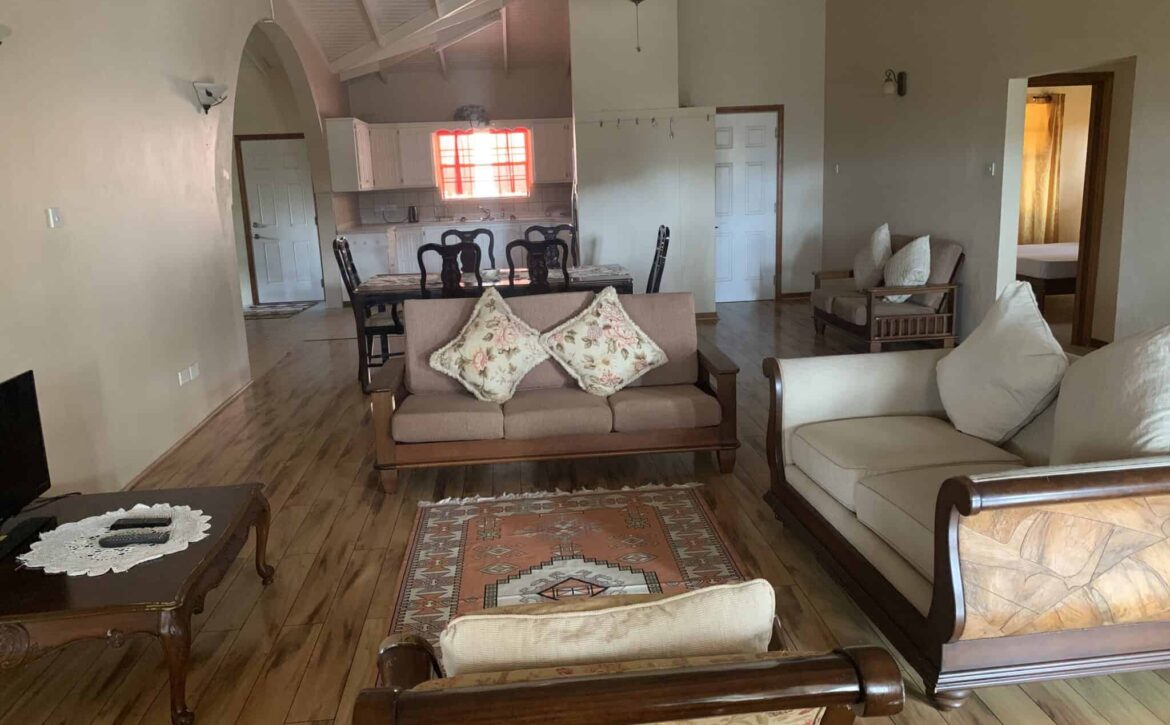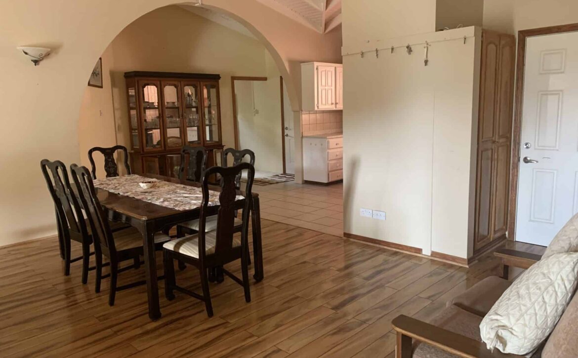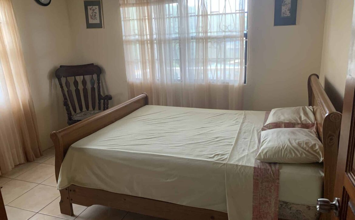 Blue Mahoe is located at Confer, St George. It is a delightful upper unit which comprises of three bedrooms and two bathrooms. The open living, dining and kitchen are centrally designed with the master bedroom and ensuite on one side and the two guests bedrooms and shared bathroom on the other side of the house. Enclosed is a patio with ample back yard space for entertainment at the rear and verandah to the front of the house. Blue Mahoe is fully furnished with airconditioned units and ceiling fans. Rent includes garden services.
