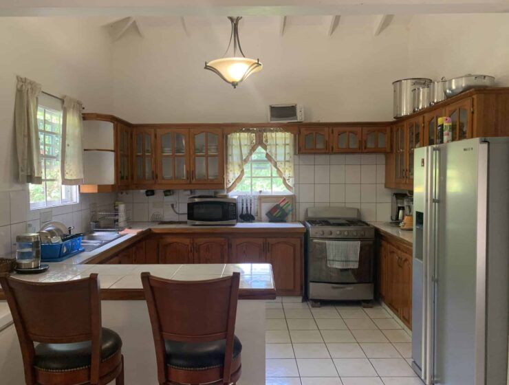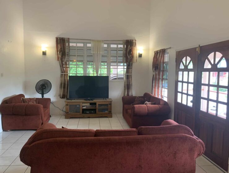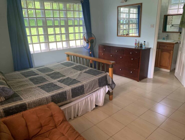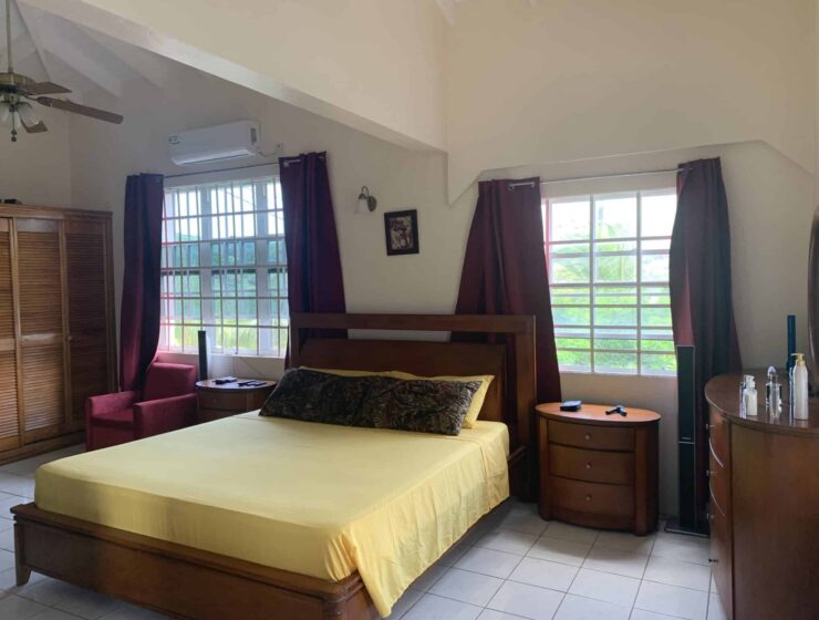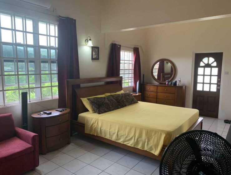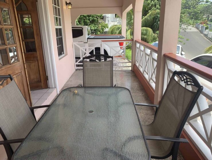 Blue Mahoe is located at Confer, St George. It is a delightful upper unit which comprises of three bedrooms and two bathrooms. The open living, dining and kitchen are centrally designed with the master bedroom and ensuite on one side and the two guests bedrooms and shared bathroom on the other side of the house. Enclosed is a patio with ample back yard space for entertainment at the rear and verandah to the front of the house. Blue Mahoe is fully furnished with airconditioned units and ceiling fans. Rent includes garden services.