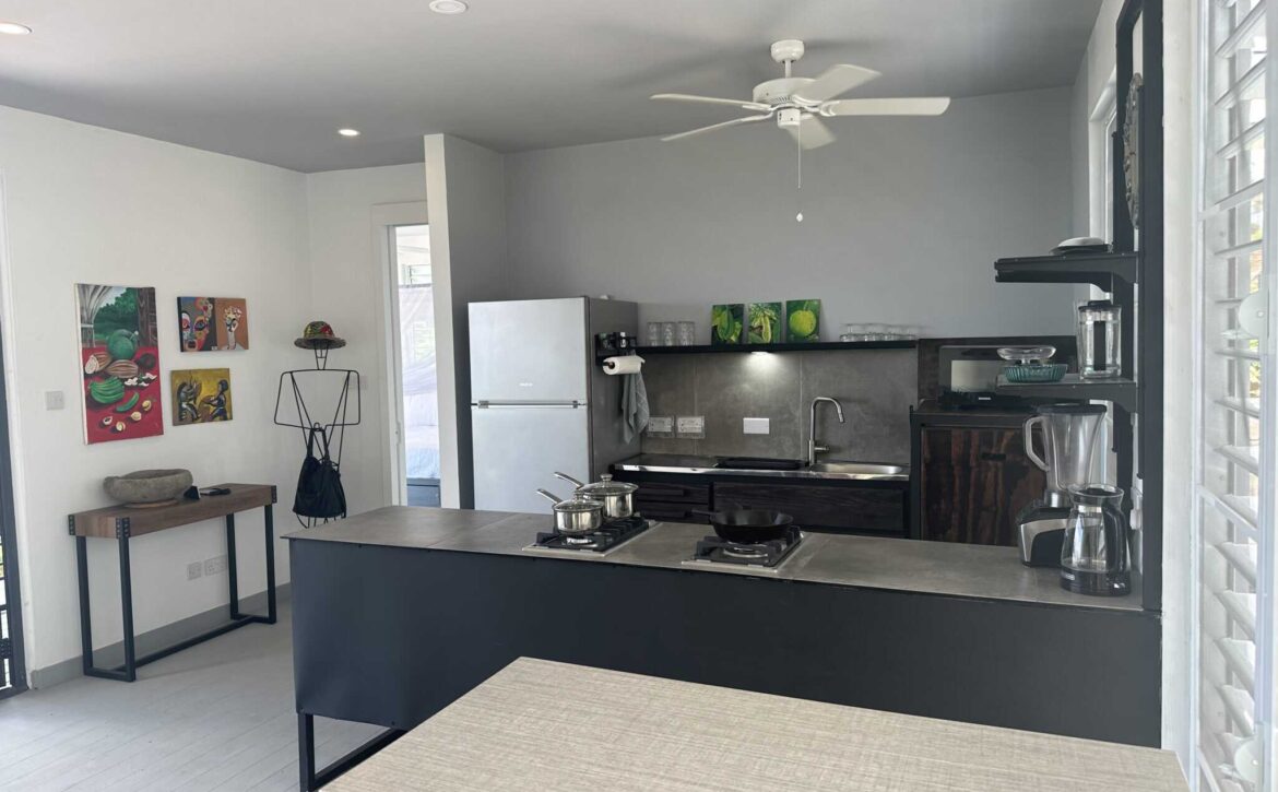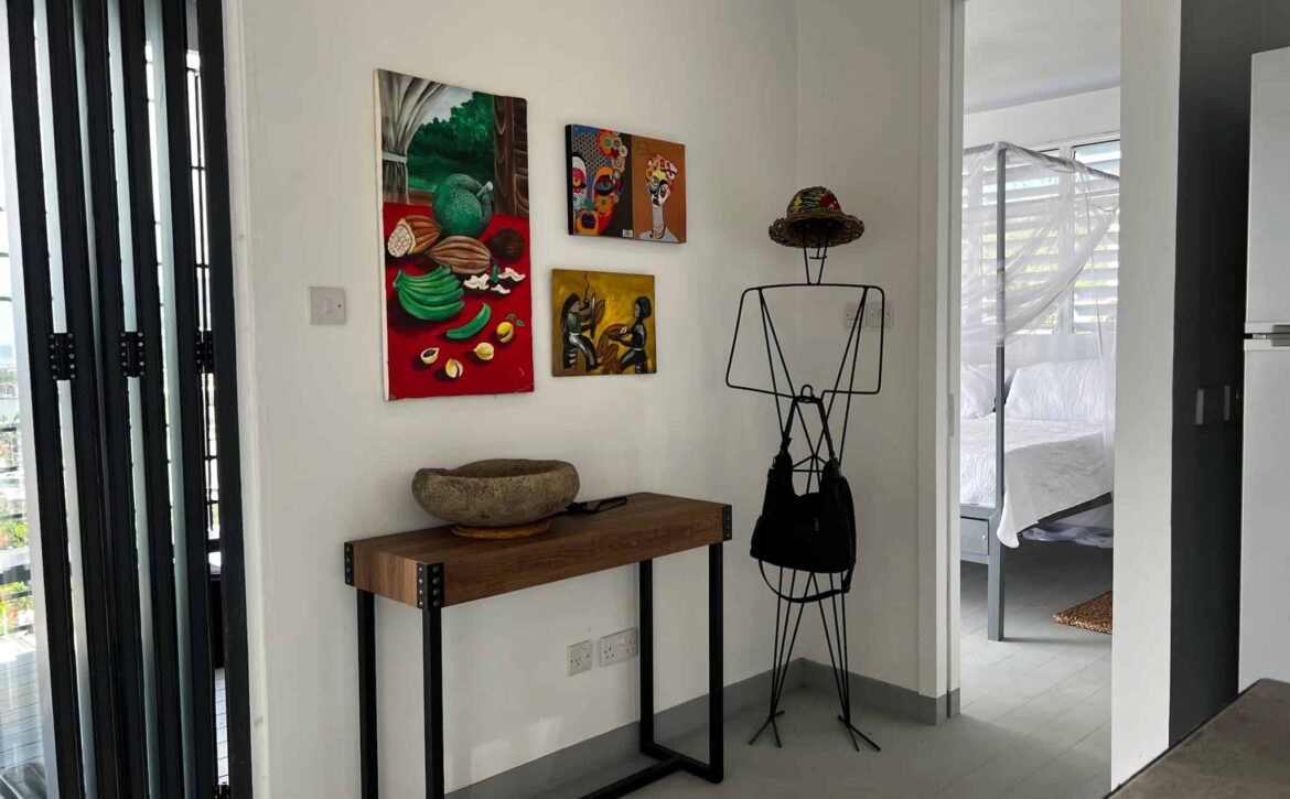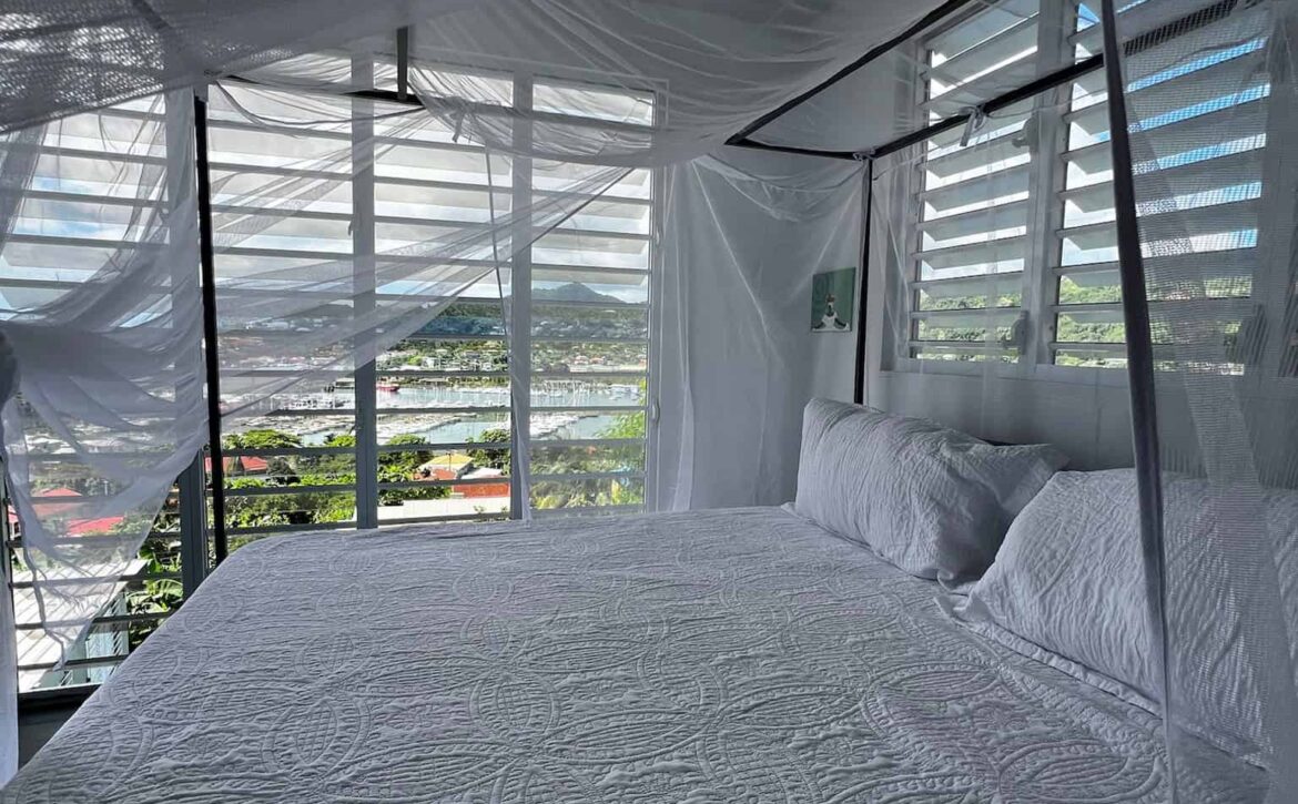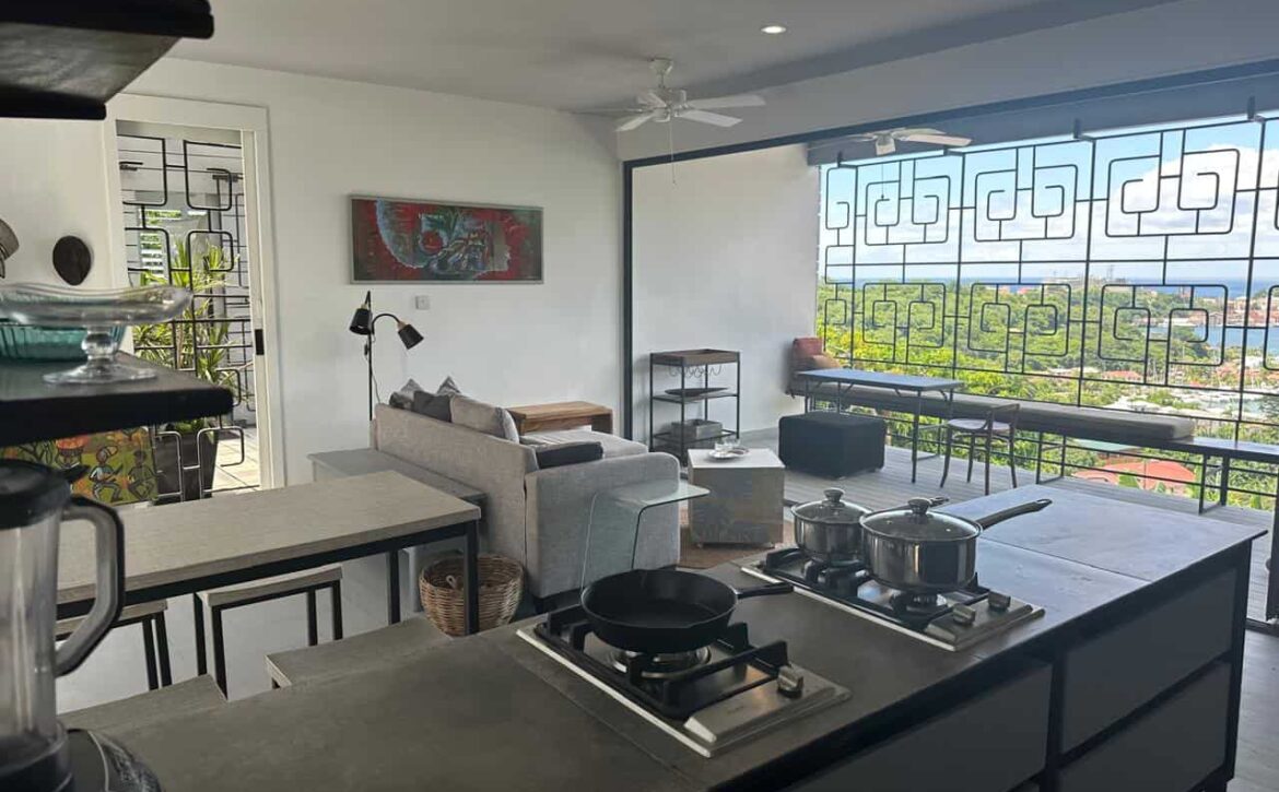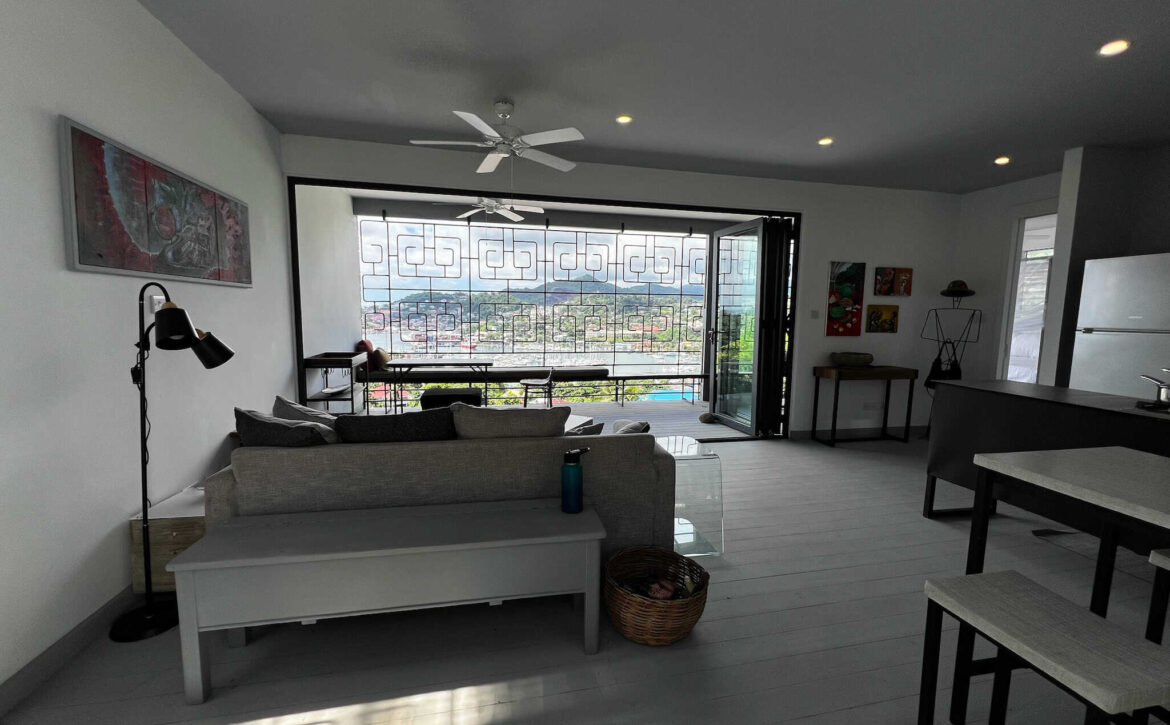 Fascinating open concept living with this breezy 1-bedroom apartment, with spectacular views of the lagoon, yacht club, located at Dixie Rd, Jean Anglais. Modern ideas, furniture and fixtures adds a charm to lazy lagoon. The kitchen includes a Dishwasher. Only 10 min to town and Grand Anse. Parking is provided. Rent includes water, internet and housekeeping.