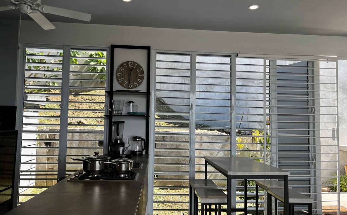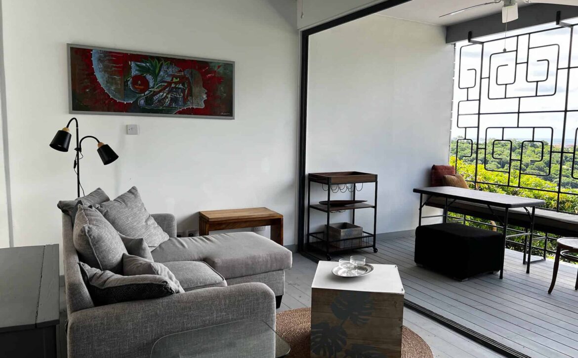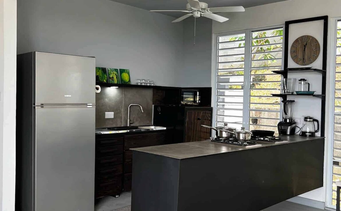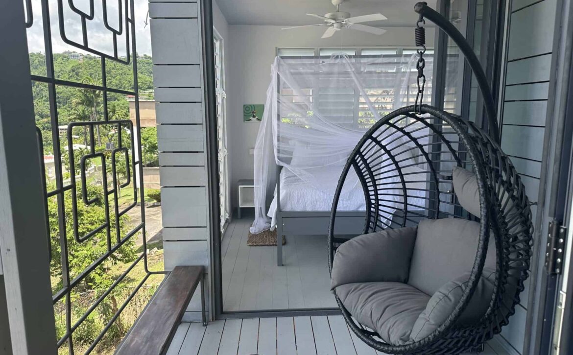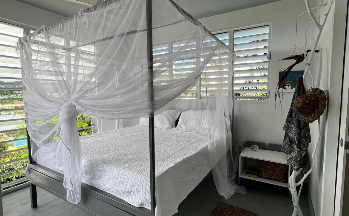 Fascinating open concept living with this breezy 1-bedroom apartment, with spectacular views of the lagoon, yacht club, located at Dixie Rd, Jean Anglais. Modern ideas, furniture and fixtures adds a charm to lazy lagoon. The kitchen includes a Dishwasher. Only 10 min to town and Grand Anse. Parking is provided. Rent includes water, internet and housekeeping.