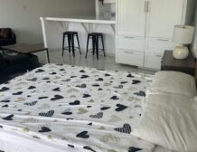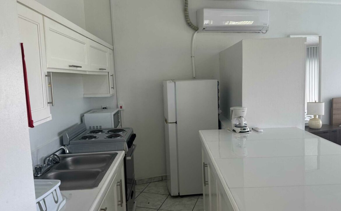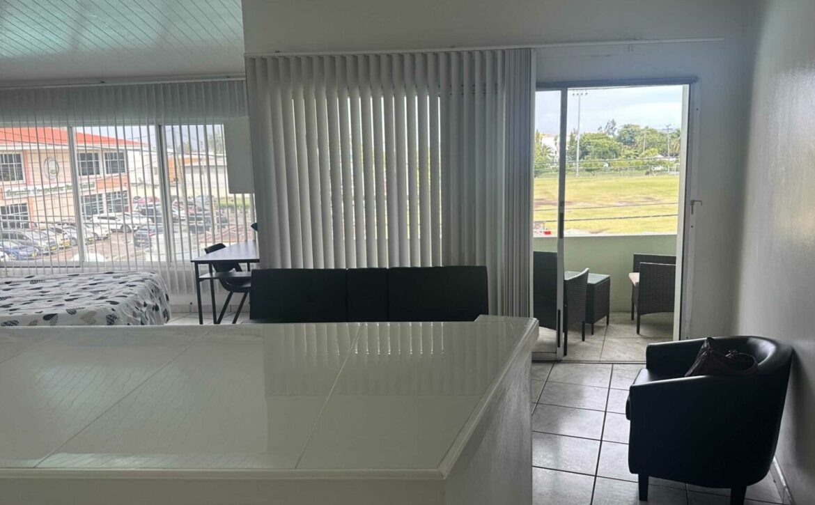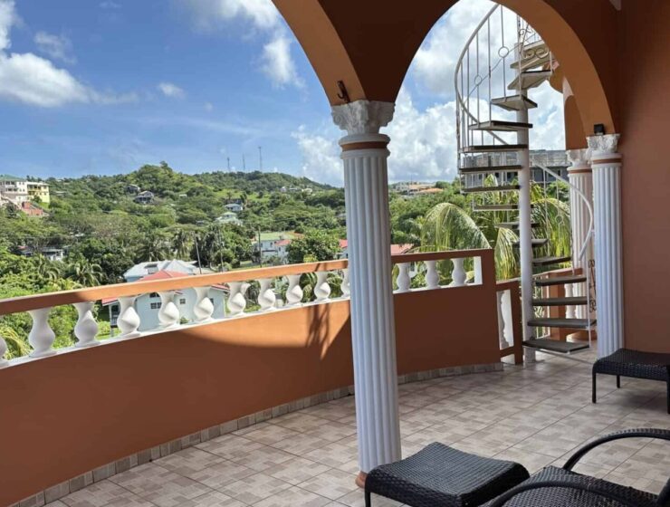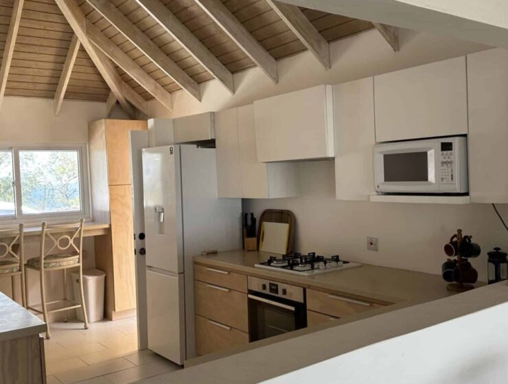 Morne Rought Apt is a beautiful studio apartment that is fully airconditioned, with a well-equipped kitchen, living space, bed, desk, …. There is a private balcony with scenic views.