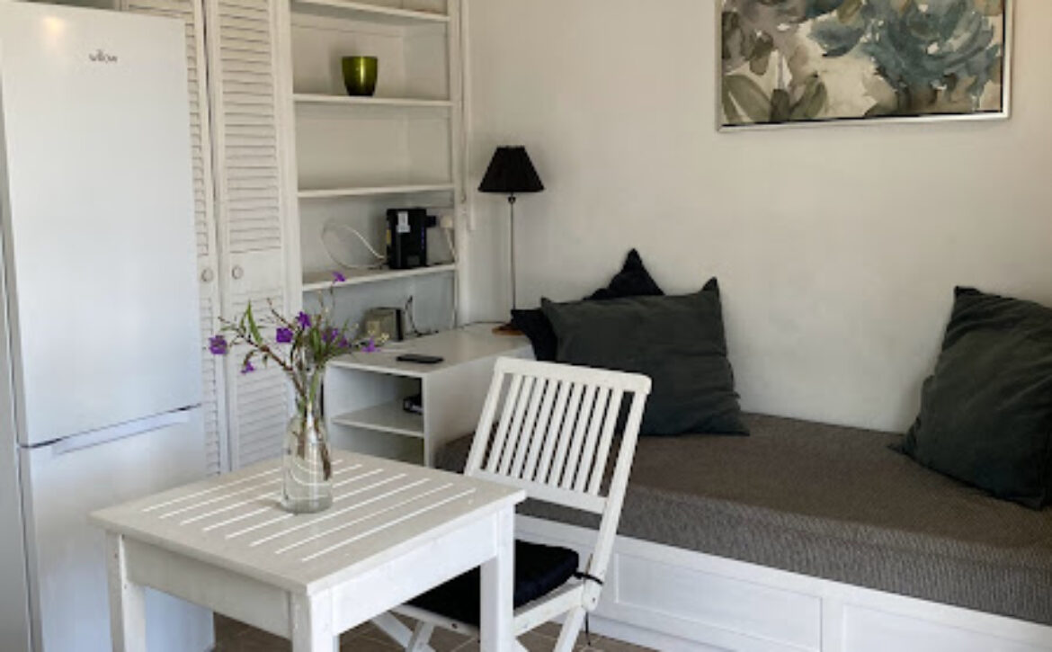 Sweet cozy 1 bedroom apartment in the prime residence of Lance Aux Epines . Furnished with comfortable living, bedroom furniture, air-conditioning in all rooms, well equipped kitchen and washer and dryer unit. Small outdoor patio for relaxation. Pet friendly. Rent includes water, internet & cooking gas.