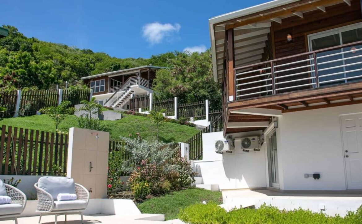 Vista Villas – Villa 2 is Located at Petite Calivigny, St. George’s nestled on approx. 7,930 sq. ft. of land featuring stunning views of Le Phare Bleu Marina and Calivigny island. This property is accessed via the marina. Villa 2 has 2 levels offering approx. 1,650 square feet of living space . On the first floor there is 1 ensuite bedroom and a beautiful kitchen and dining room area. The ground Floor features 1 ensuite bedroom. Villa 2 has a beautiful front yard with a spectacular sea view, a lovely pool and outdoor shower.