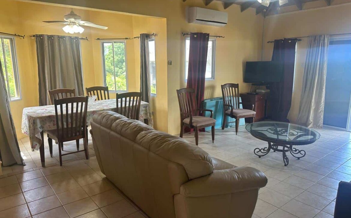 Located at Belmont, with scenic views, is this top level 2 bedroom, 2 bath apartment. Furnished with sea views. Parking provided. Within 10 mins drive to Grand Anse center and town of St. George’s. Rent includes Water.